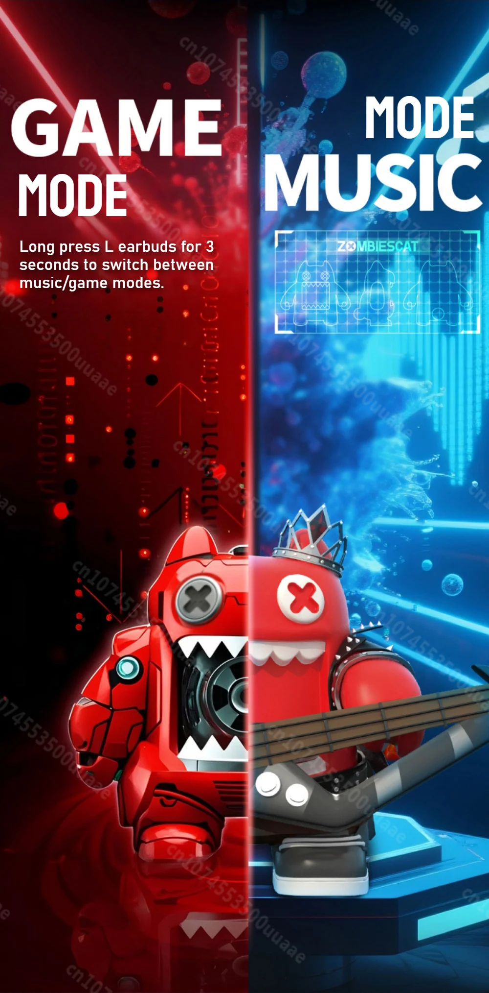 ◆ Game/Music Mode Switch: Long-press left earphone’s touch control for 3s to switch between game and music modes.
